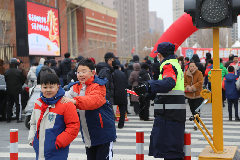 當(dāng)日清晨7時許,校園門前已秩序井然。在赤峰市公安交管部門統(tǒng)一指揮調(diào)度下,專業(yè)護(hù)學(xué)安保力量提前到崗,在校園出入口、人行橫道及車流集中路段開展值守。執(zhí)勤人員與交警密切配合,規(guī)范開展交通疏導(dǎo),引導(dǎo)接送車輛即停即走,及時勸導(dǎo)交通違法行為,護(hù)送學(xué)生安全通過道路,有效維護(hù)上下學(xué)高峰時段交通秩序,成為校園周邊一道亮眼的“平安風(fēng)景線”。