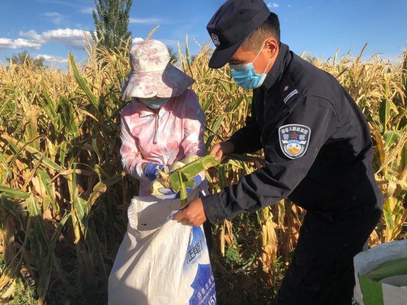 金秋時(shí)節(jié),大地金黃,碩果飄香,民警們頭頂烈日,揮舞鐮刀,有條不紊地收割著玉米,田間地頭中到處洋溢著爽朗的笑聲、彌漫著豐收的喜悅。這是在內(nèi)蒙古阿拉善右旗巴丹吉林鎮(zhèn)阿日毛道嘎查的莊稼地里,阿拉善邊境管理支隊(duì)的民警幫助群眾秋收的景象。