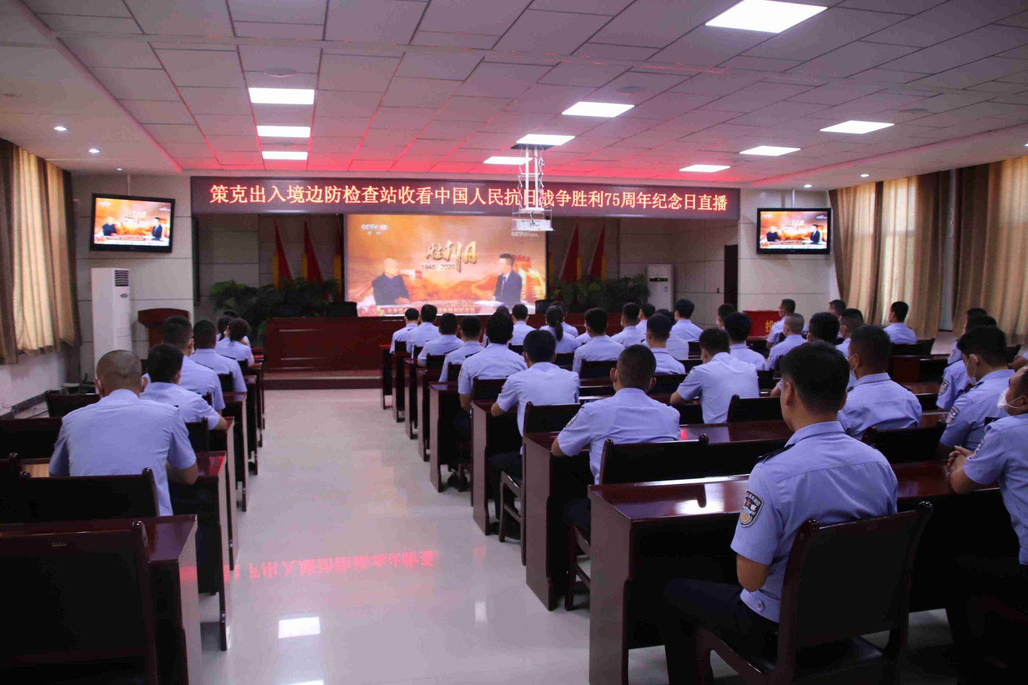 9月3日,策克出入境邊防檢查站組織全站民警收看中國人民抗日戰(zhàn)爭勝利75周年紀(jì)念日直播。