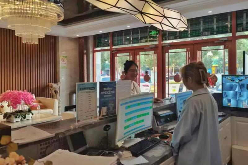 隨著旅游熱度持續(xù)攀升,額濟(jì)納旗各酒店入住率不斷走高,部分酒店房間需提前一周預(yù)訂。在額濟(jì)納旗鉑悅酒店,記者看到不少游客提著行李辦理入住,工作人員正熱情解答景點(diǎn)開放時(shí)間、用餐推薦等問題。據(jù)該酒店負(fù)責(zé)人單鴿介紹,7月以來,酒店幾乎每天都處于滿房狀態(tài)。