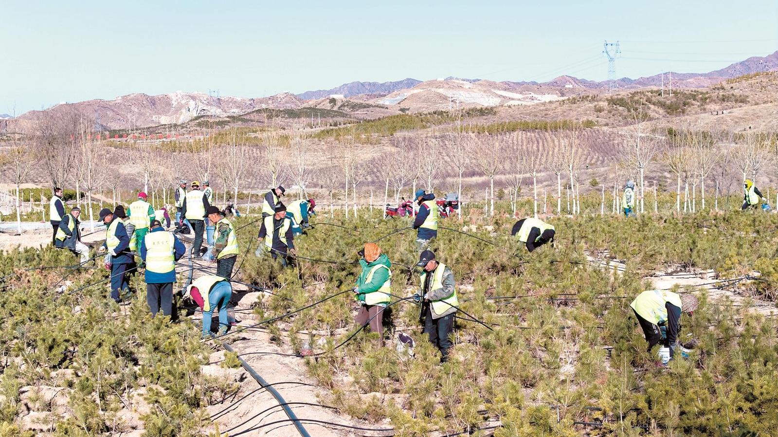 由東到西,從南向北,青苗綻翠,新綠生根。放眼包頭“三北”工程各旗縣區(qū)生態(tài)建設(shè)現(xiàn)場,處處呈現(xiàn)出一片熱火朝天的繁忙景象。苗木搬運、打孔、樹苗栽種、填土圍堰、澆水,人力與機械互相協(xié)作,科技與創(chuàng)新相得益彰。