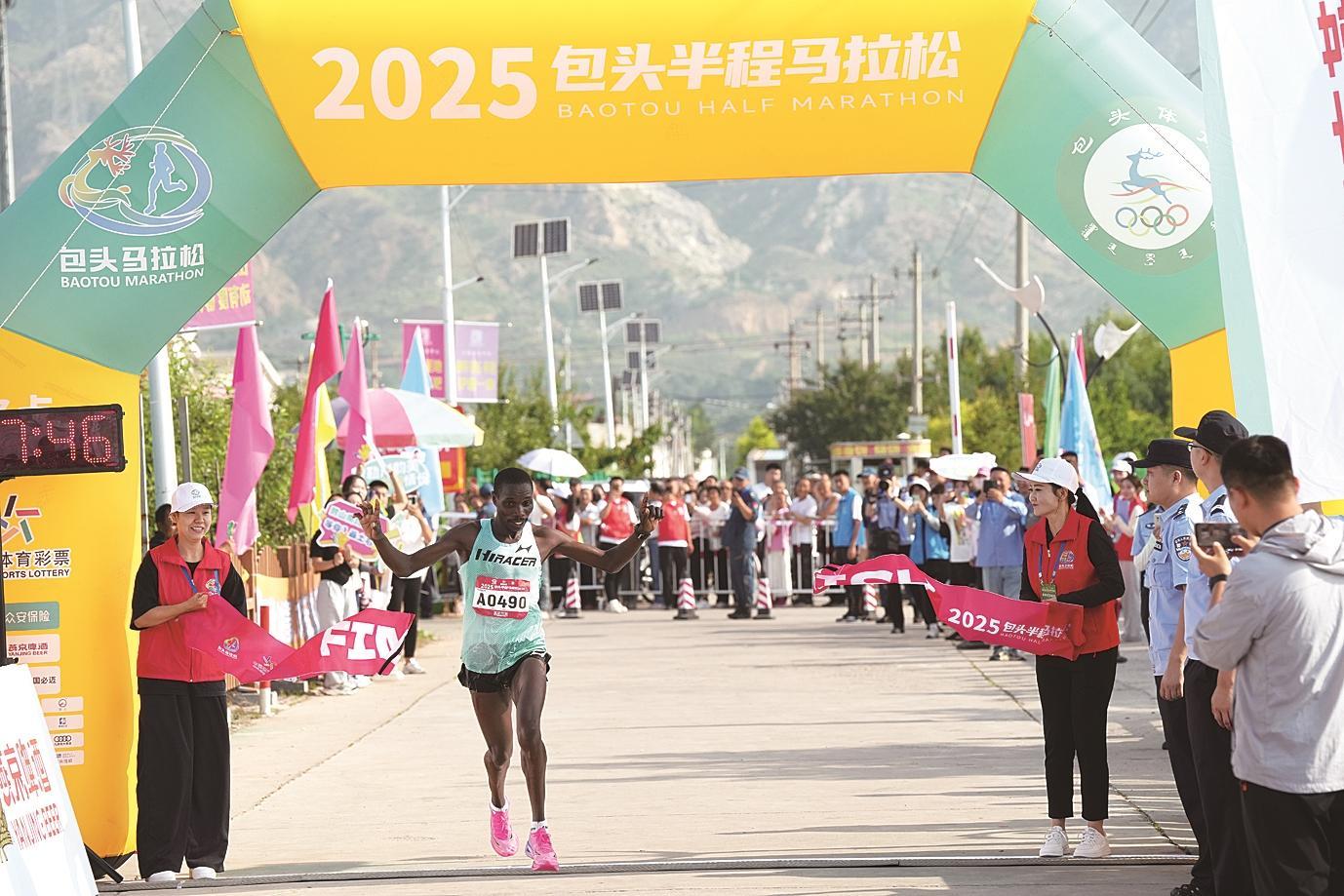 撞線后,男子組冠軍來自肯尼亞的選手Vincent kipchumba Toroitich表示:“這是我第一次來包頭,今天很開心能取得這個(gè)成績,感覺包頭非常好?!?/p>