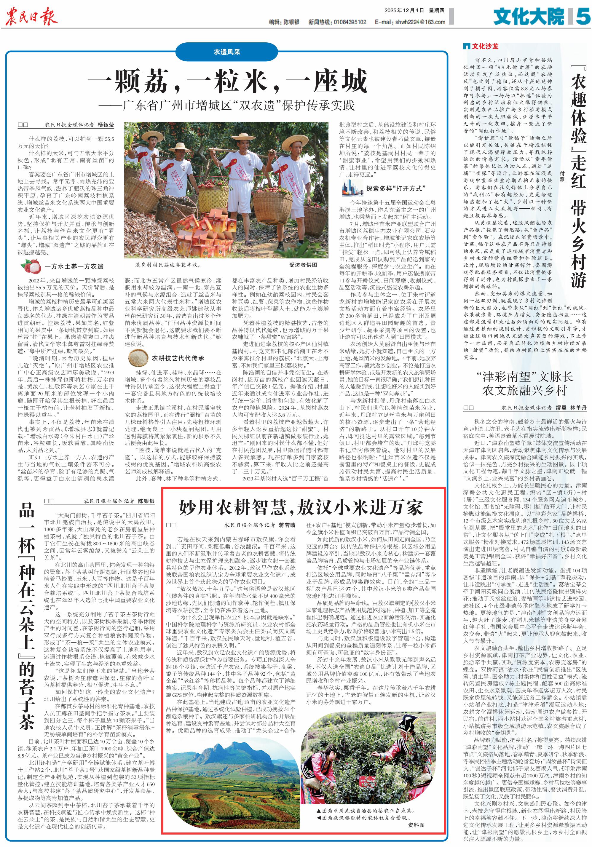 2025年12月4日《農民日報》第5版刊發(fā)了《妙用農耕智慧,敖漢小米進萬家》的文章,報道了內蒙古赤峰市敖漢旗立足農業(yè)文化遺產的資源優(yōu)勢,將傳統(tǒng)種質資源保護作為首要任務。經過十余年發(fā)展,敖漢小米從默默無聞到聲名遠揚,不僅入選全國“農遺良品”優(yōu)選計劃十佳品牌,區(qū)域公用品牌價值突破100億元,還有效帶動了當?shù)剞r民增收和鄉(xiāng)村產業(yè)振興。