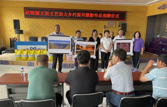 活動(dòng)期間,文聯(lián)主席王春梅說(shuō),杭錦旗文聯(lián)始終響應(yīng)黨中央及各級(jí)黨委的號(hào)召,非常重視鄉(xiāng)村文化振興,做好文化下鄉(xiāng)工作,推進(jìn)農(nóng)牧區(qū)域的文化建設(shè),尤其是遇到今年遇到嚴(yán)重旱情時(shí)期,杭錦旗文聯(lián)組織了攝影藝術(shù)家們拍攝了30幅經(jīng)典作品,捐給希日摩仁嘎查及村民,緩解精神壓力,協(xié)助渡過(guò)難關(guān)。