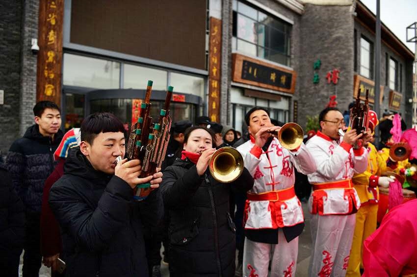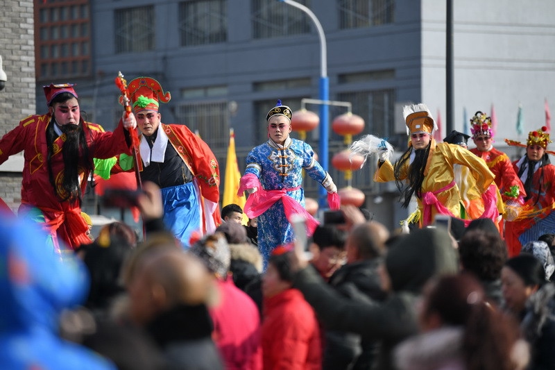 活動現(xiàn)場,舞龍舞獅、秧歌高蹺,旱船隊伍和著鑼鼓嗩吶聲遨游在人群當中,祈求著新的一年風調雨順、大吉大利,在不遠處,手藝人重聚在古老的大召東倉,蛋雕、糖人、魔術把戲,承載著無數(shù)歷史回憶的舊城北門鐘樓被再次還原,而穿行其中的青城人正容光煥發(fā),以昂揚的姿態(tài)迎接著新時代、期待著新挑戰(zhàn)。
