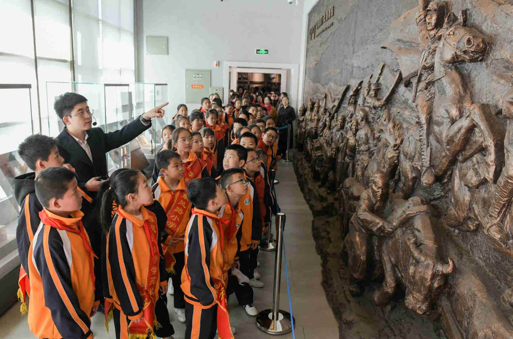 3月30日,講解員為小學(xué)生們講述革命故事。當(dāng)日,呼和浩特市賽罕區(qū)東風(fēng)路小學(xué)學(xué)苑校區(qū)在烏蘭夫紀(jì)念館開展了一場主題為“緬懷先烈告慰英雄做時(shí)代新人”的教育實(shí)踐活動(dòng)。孩子們在聆聽革命故事、學(xué)習(xí)革命先烈光榮事跡中,接受了一次生動(dòng)的愛國主義教育。(內(nèi)蒙古日報(bào)社融媒體記者 懷特烏勒斯攝)  3月30日,講解員為小學(xué)生們講述革命故事。當(dāng)日,呼和浩特市賽罕區(qū)東風(fēng)路小學(xué)學(xué)苑校區(qū)在烏蘭夫紀(jì)念館開展了一場主題為“緬懷先烈告慰英雄做時(shí)代新人”的教育實(shí)踐活動(dòng)。孩子們在聆聽革命故事、學(xué)習(xí)革命先烈光榮事跡中,接受了一次生動(dòng)的愛國主義教育。(內(nèi)蒙古日報(bào)社融媒體記者 懷特烏勒斯攝)