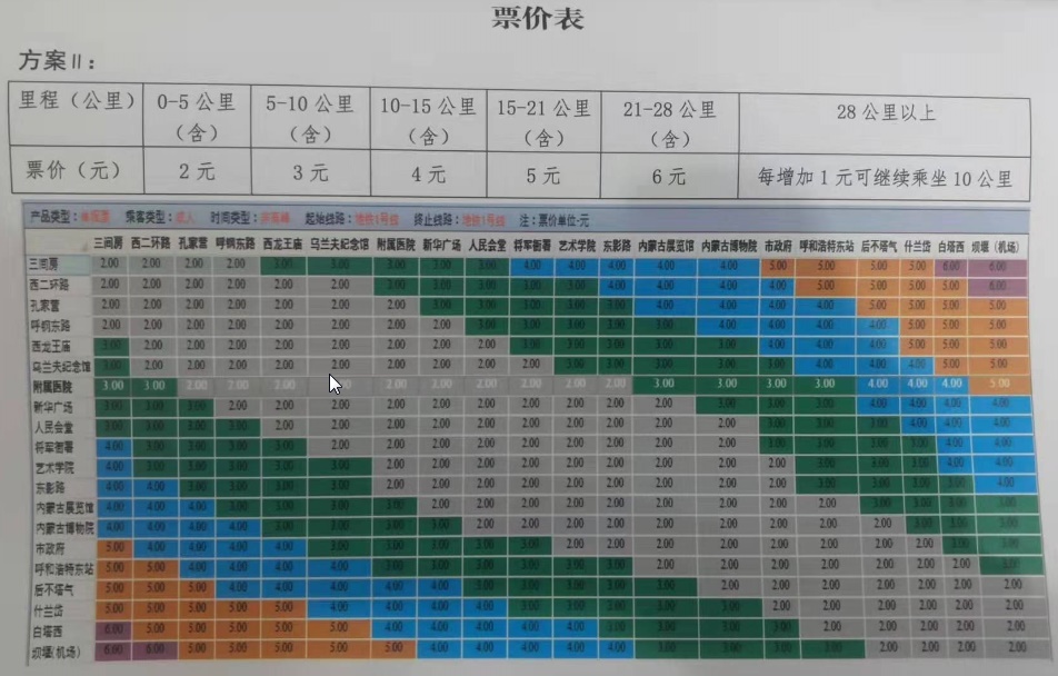 呼和浩特市軌道交通票制票價(jià)方案