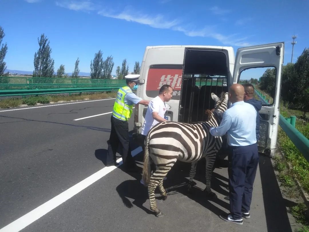 13時01分,巡邏民警到達(dá)繞城高速32KM南幅,發(fā)現(xiàn)有兩人已將斑馬控制,一輛貨車停在北幅應(yīng)急車道內(nèi)。在給人員、車輛、斑馬做好安全防護(hù)措施后,民警了解到,控制斑馬的二人為失主,上午二人將斑馬裝上貨車,從包頭市前往呼和浩特市,準(zhǔn)備將斑馬供大眾觀賞,沒想到在中途斑馬受到驚嚇,導(dǎo)致意外掙脫束縛,從貨車?yán)锱艹鰜?,在此過程中未有人員受傷,未造成財(cái)產(chǎn)損失。