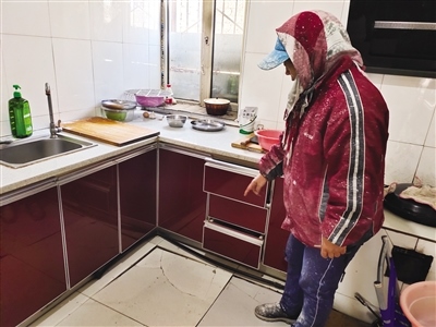 10月28日上午,記者再次來到阿木奈營村回訪,馬美蘭家和趙秀平家的暖氣片均已安裝,供熱良好。仍然有部分村民家的暖氣不熱,部分村民屋后的架空暖氣管道接口處漏水。村民馮翠梅苦惱地告訴記者,施工隊在她家房子后面安裝暖氣管道時挖開坑,下雨后坑內(nèi)積水滲漏到地基,導致她家廚房地基下沉。記者看到,下沉部分的大理石板已破碎,廚柜也有下沉。