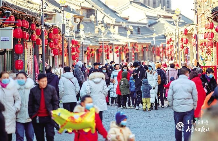 2月15日,人們在呼和浩特市玉泉區(qū)塞上老街游玩。當(dāng)日是大年初四,呼和浩特市玉泉區(qū)塞上老街、通順大巷、大召步行街充滿了濃濃的年味兒,吸引人們前來逛街賞景。內(nèi)蒙古日報社融媒體記者 王磊 攝