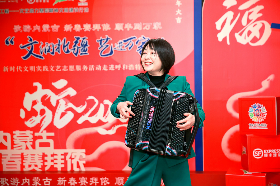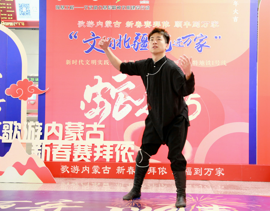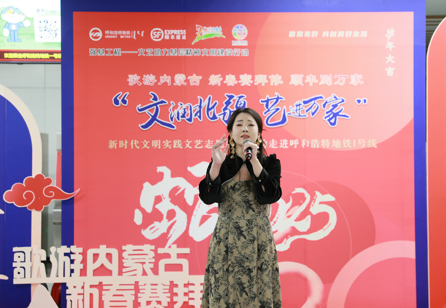 北疆新聞呼和浩特1月1日電(記者 張楊)“夢(mèng)中的呼和浩特,胸懷像草原遼闊……”2025年1月1日上午,悠揚(yáng)的歌聲在呼和浩特地鐵 1 號(hào)線內(nèi)蒙古博物院站飄揚(yáng)。新年第一天,“歌游內(nèi)蒙古 新春賽拜儂 順豐到萬(wàn)家”新時(shí)代文明實(shí)踐文藝志愿服務(wù)活動(dòng)在此舉行,現(xiàn)場(chǎng)除了青城市民耳熟能詳?shù)脑瓌?chuàng)歌曲《夢(mèng)中的呼和浩特》外,根據(jù)南北朝民歌改編的《敕勒歌》、布里亞特蒙古族民歌《吆赫爾》、二人臺(tái)傳統(tǒng)唱段《拜大年》、相聲表演《說(shuō)學(xué)逗唱》、手風(fēng)琴獨(dú)奏《我的少女時(shí)代》、蒙古舞《迷途的羔羊》等精彩紛呈的節(jié)目,讓往來(lái)的乘客們紛紛駐足、高聲喝彩。