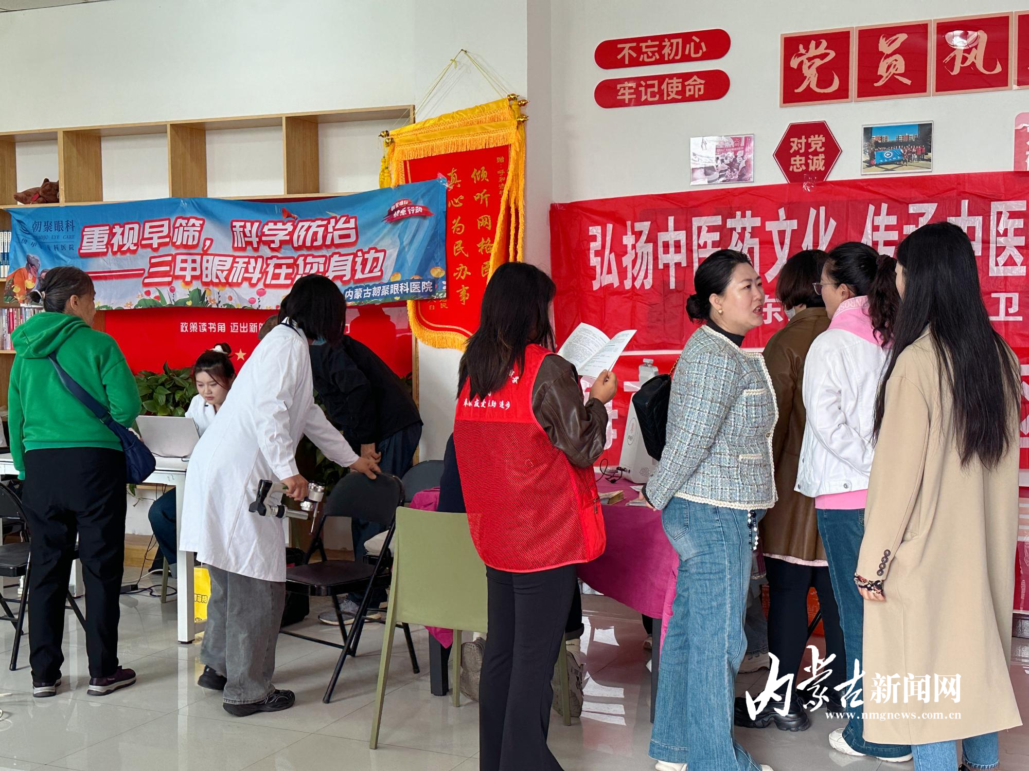 “醫(yī)生,我最近看報(bào)紙總覺(jué)得字發(fā)虛,是不是白內(nèi)障又加重了?”“您別著急,先坐好,我?guī)湍屑?xì)查查眼底?!?0月10日上午,呼和浩特市新城區(qū)海拉爾路街道哲里木路社區(qū)戎輝小區(qū)活動(dòng)室內(nèi)暖意融融,醫(yī)護(hù)人員正耐心地為居民做眼部檢查。當(dāng)日,哲理木路社區(qū)聯(lián)合內(nèi)蒙古朝聚眼科醫(yī)院在這里開(kāi)展眼科義診活動(dòng)。