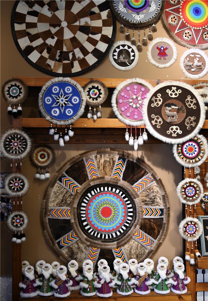 “太陽(yáng)花”是鄂溫克族傳統(tǒng)手工藝品,圓心象征著太陽(yáng),四周毛針象征著陽(yáng)光,寓意著溫暖、吉祥。如今,“太陽(yáng)花”已經(jīng)成為鄂溫克族自治旗暢銷的文創(chuàng)產(chǎn)品,帶動(dòng)當(dāng)?shù)責(zé)釔?ài)傳統(tǒng)手工藝品制作的人們共同走上致富路。