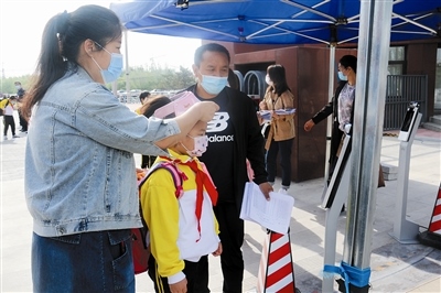“等了這么久,終于可以和同學(xué)們說句:早上好?!?月2日,早上7點(diǎn)剛過,通遼新城第一中學(xué)小學(xué)部二年一班的班主任崔老師早早的在校門口,迎接班里的小朋友們。記者在校門口看到,此時(shí),小學(xué)部二、三年級的小朋友已經(jīng)陸續(xù)入校了,顯然,“萌娃”們已經(jīng)被校門口的層層關(guān)卡震撼到了,幸好,在眾多老師的幫助和指引下順利進(jìn)入了校門。進(jìn)入了校門后,還有一道重要關(guān)卡,測量體溫,習(xí)慣了伸出手臂來測量體溫的“萌娃”們,對著紅外線測溫儀卻不知所措了,有的對著測溫儀伸出了手臂、有的對著測溫儀行禮,著實(shí)“萌”翻了現(xiàn)場所有人?!按蘩蠋煟覀兌枷肽懔?。”見到幾位小朋友要湊到跟前兒,崔老師立刻提醒同學(xué)們:我也很想念你們,但是我們要保持“一米”的距離,快去教室吧!小朋友們被“殘忍”拒絕,很是失落。