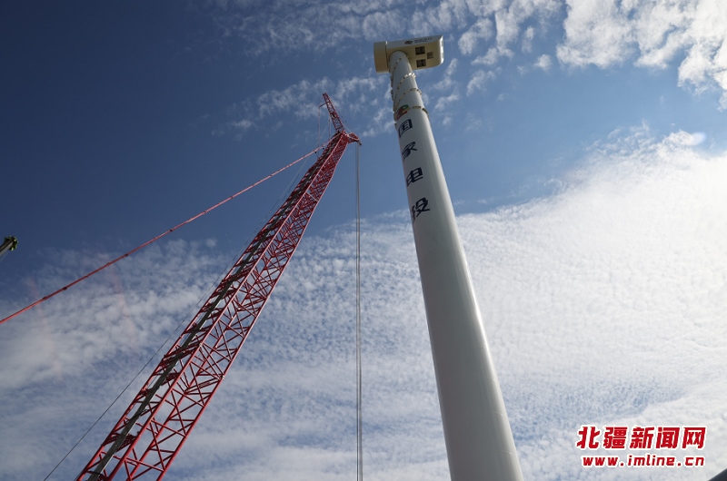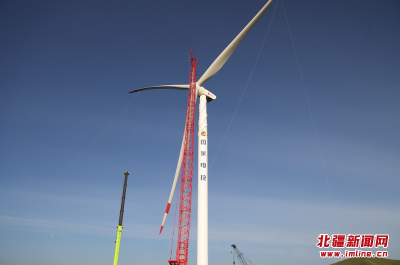 霍林河循環(huán)經濟示范工程續(xù)建200MW風電項目首臺風機完成吊裝
