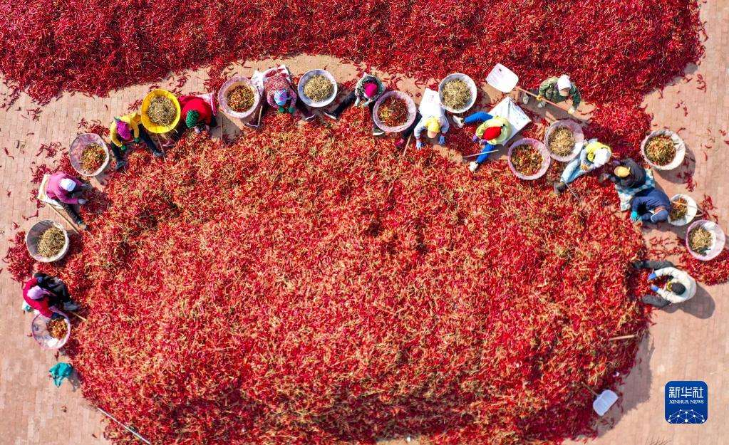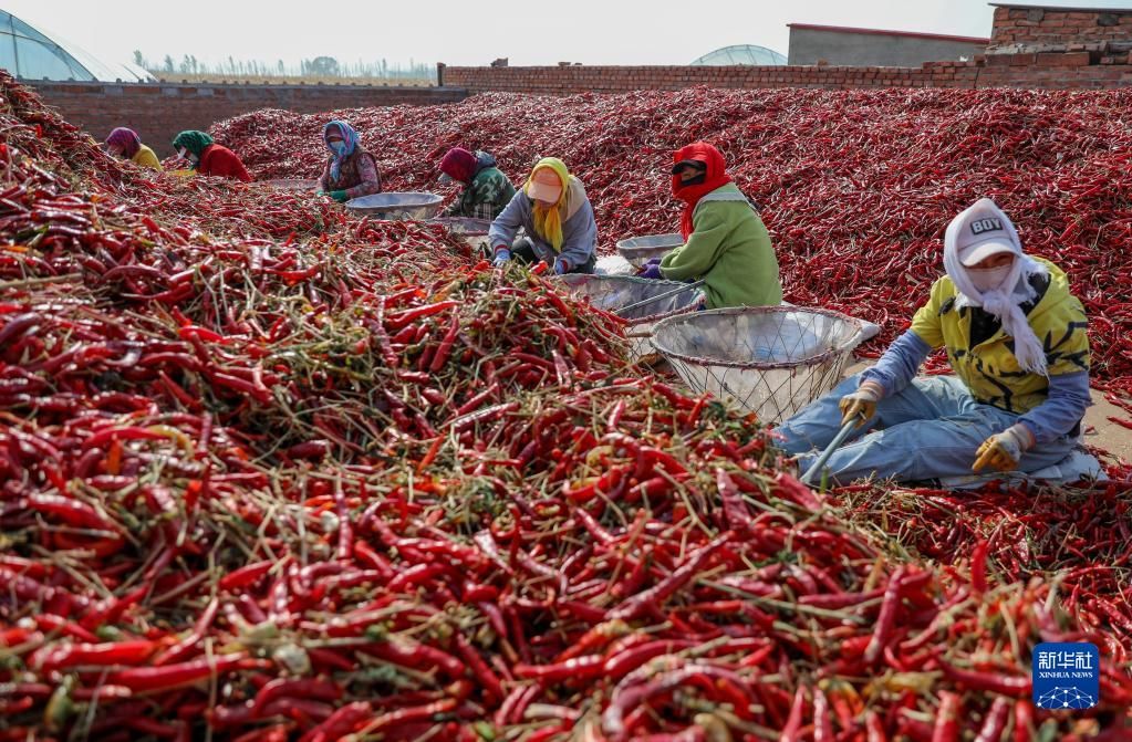 近日,內(nèi)蒙古通遼市開魯縣迎來紅干椒收獲銷售旺季。開魯縣紅干椒皮紅肉厚、品質(zhì)優(yōu)良,產(chǎn)品暢銷國內(nèi)外市場。近年來,開魯縣紅干椒種植面積穩(wěn)定在60萬畝。新華社記者 連振 攝
