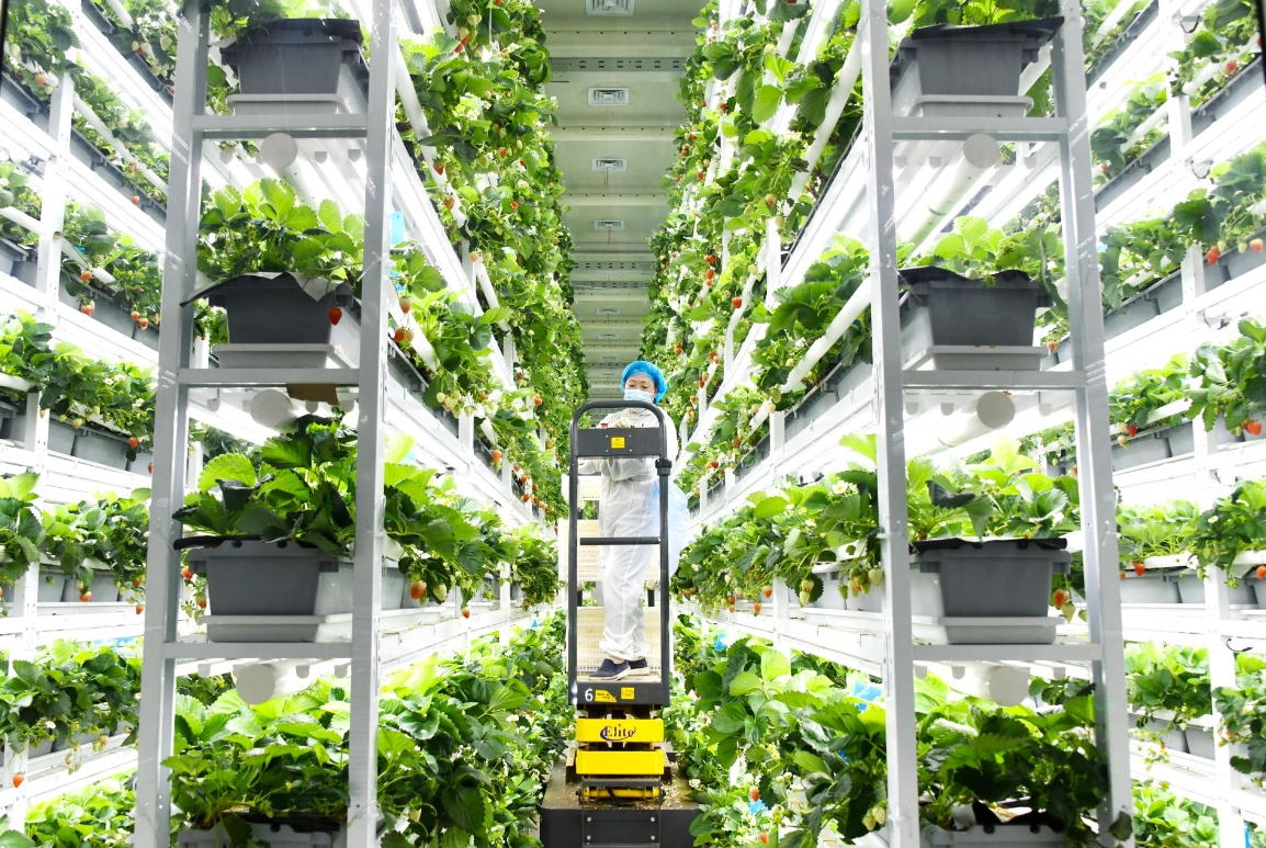 “目前,我們主要種植的有香野、越秀、粉玉等草莓品種。”工作人員邊走邊介紹,不同于傳統(tǒng)種植模式,基地以四維生態(tài)科技有限公司創(chuàng)新的農(nóng)業(yè)4.0植物工廠解決方案為核心,打破了自然環(huán)境的限制,使得農(nóng)業(yè)生產(chǎn)不再受季節(jié)、地域等因素的影響,極大地提高了生產(chǎn)效率和資源利用率。