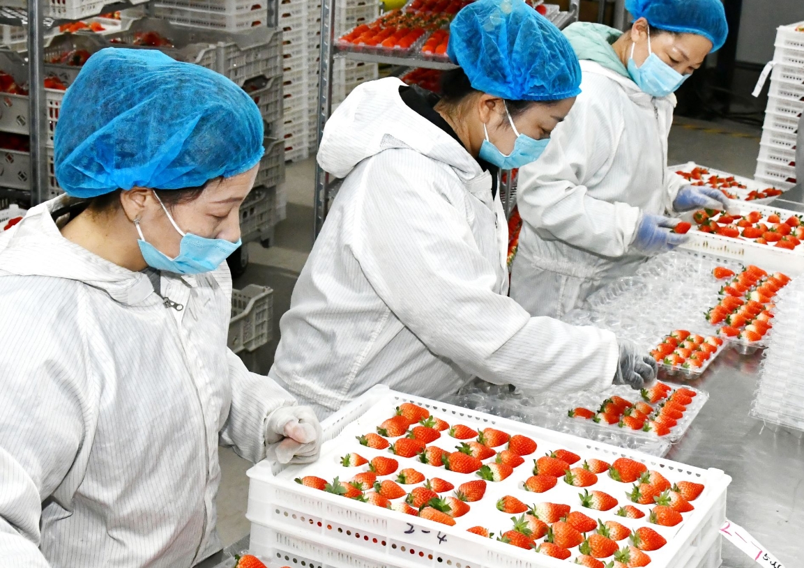 在包裝車間,只見工作人員正手法嫻熟地包裝著草莓,一顆顆新鮮草莓經(jīng)過(guò)分揀、打包,將通過(guò)冷鏈運(yùn)輸,跨越山海,奔赴全球各地,與世界共享來(lái)自烏蘭察布的“莓”好與甜蜜。