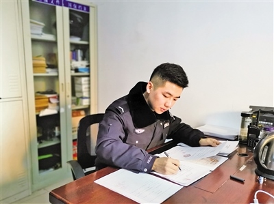 “我當人民警察還不到一年,沒想到就趕上了中國人民警察節(jié),太榮幸了。在這里,我祝愿所有的人民警察節(jié)日快樂,平平安安。”1月8日,呼和浩特市新城區(qū)公安分局西街派出所治安民警楊國清激動地說。2020年4月,23歲的楊國清正式成為西街派出所的一名治安民警,出警處警、處理案件成為他的日常工作。入職前,警校畢業(yè)再加上經(jīng)過一段時間的實習(xí),楊國清認為這些工作應(yīng)該很容易,可當他真正走上工作崗位后才發(fā)現(xiàn),并不像自己想象的那么簡單,需要學(xué)習(xí)的地方還很多。在工作中,他總是比別人多付出一份辛苦,不斷學(xué)習(xí),不斷請教,在實踐中積累經(jīng)驗,增強業(yè)務(wù)能力。“當作完第一份筆錄,簽上自己名字的那一刻,我才真正感覺到自己肩上的責任重大。”楊國清告訴記者。除了日常處理案件外,楊國清和搭檔3天值一次班,一值就是24小時。只要接到報警,他們會第一時間趕到現(xiàn)場進行處理。打架斗毆、偷盜搶劫、鄰里糾紛……無論是深夜還是凌晨,哪里有警情他們就奔向哪里。警察的工作不僅辛苦還很危險,與家人也聚少離多。當記者問到是否后悔選擇這個職業(yè)時,楊國清堅定地說:“我從小的夢想就是當一名警察,保護人民、扶危救困,全力以赴維護一方平安。每當聽到一句感謝的話時,我覺得一切付出都是值得的。”