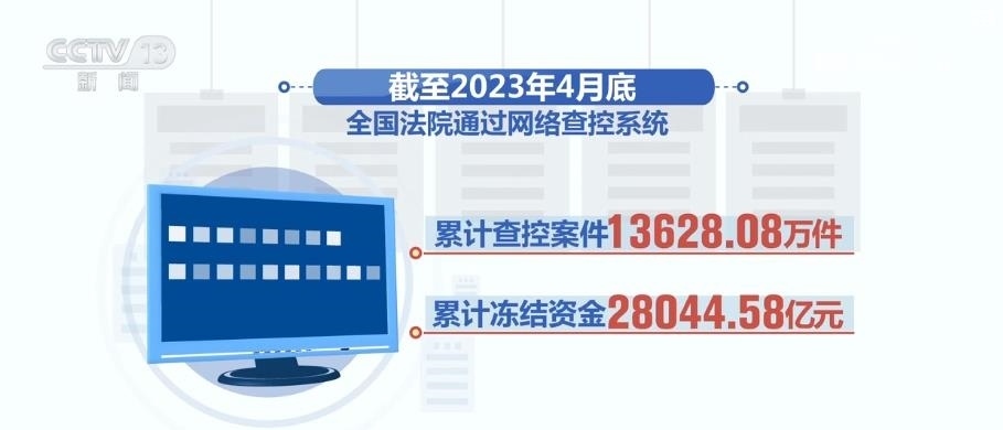 截至2023年4月底,全國(guó)法院通過(guò)網(wǎng)絡(luò)查控系統(tǒng)累計(jì)查控案件13628.08萬(wàn)件,累計(jì)凍結(jié)資金28044.58億元,查詢房屋、土地等不動(dòng)產(chǎn)信息81963.89萬(wàn)條,車輛19018.00萬(wàn)輛,證券42195.43億股,漁船和船舶371.79萬(wàn)艘,網(wǎng)絡(luò)資金1009.75億元,有力維護(hù)了勝訴當(dāng)事人合法權(quán)益。