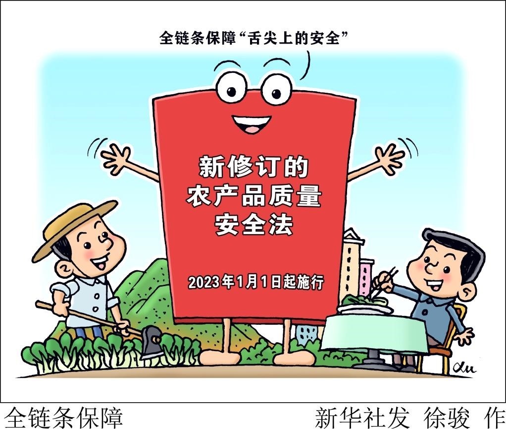 新版農(nóng)產(chǎn)品質(zhì)量安全法自1月1日起施行,實(shí)施農(nóng)產(chǎn)品質(zhì)量安全承諾達(dá)標(biāo)合格證制度,與食品安全法銜接,實(shí)現(xiàn)從田間地頭到百姓餐桌的全過程、全鏈條監(jiān)管。