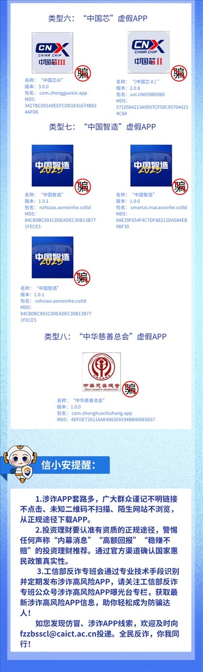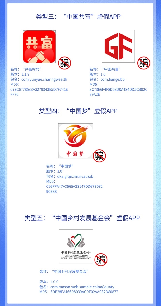 近期一些不法分子套用各類官方公開信息,打著“國家支持項目”“國家惠民政策”旗號,制作出一大批App,在其中編造虛假投資理財項目,以高收益為誘餌,忽悠不明真相的群眾在App“投資”進(jìn)而實施詐騙。
