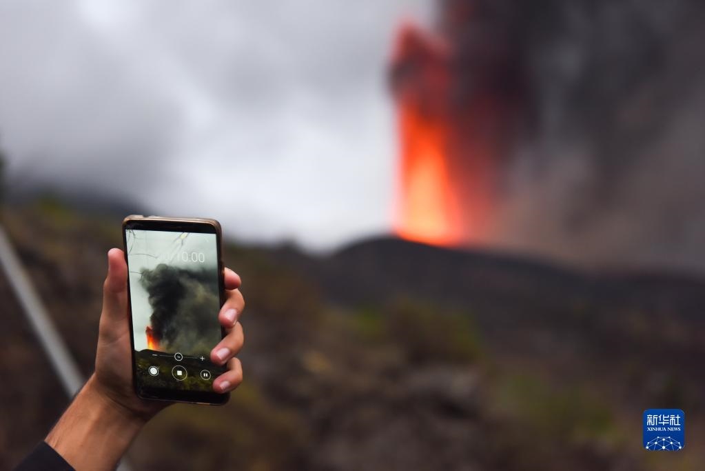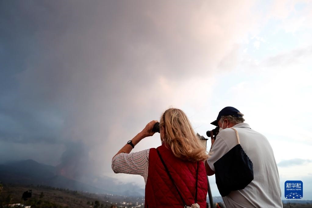 9月23日,人們在西班牙拉帕爾馬島觀看火山噴發(fā)。