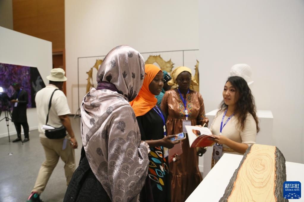 5月19日,觀眾在塞內(nèi)加爾達(dá)喀爾非洲當(dāng)代藝術(shù)雙年展的中國館參觀。新華社記者王子正攝