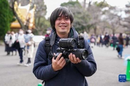 2月19日,在日本東京上野動物園,為大熊貓“香香”舉辦過攝影展的博主高氏貴博準備用相機記錄當天的“香香”。新華社記者 張笑宇 攝