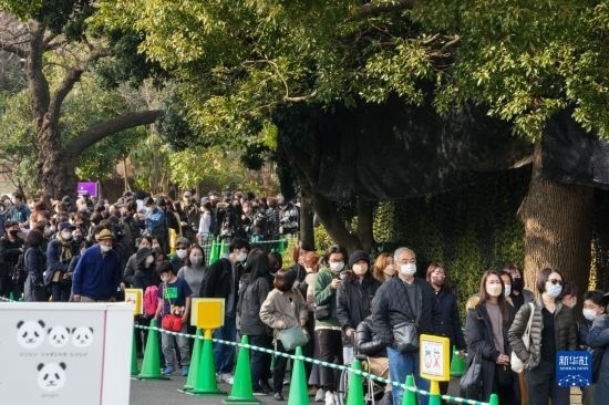 2月19日,在日本東京上野動物園,游客排隊等待與大熊貓“香香”告別。新華社記者 張笑宇 攝