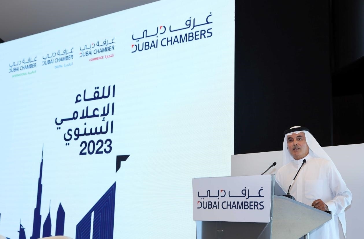 圖為迪拜商會(huì)主席在年會(huì)上發(fā)表致辭。迪拜媒體辦公室供圖