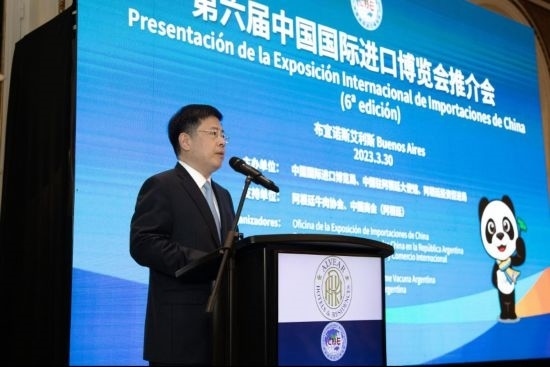 當(dāng)?shù)貢r(shí)間3月30日,第六屆中國(guó)國(guó)際進(jìn)口博覽會(huì)推介會(huì)在阿根廷布宜諾斯艾利斯成功舉辦。本次活動(dòng)由中國(guó)國(guó)際進(jìn)口博覽局、中國(guó)駐阿根廷使館、阿根廷投資促進(jìn)局主辦,阿根廷牛肉協(xié)會(huì)、中國(guó)商會(huì)(阿根廷)協(xié)辦。這是第六屆進(jìn)博會(huì)3月初啟動(dòng)全球推介以來,首次在美洲國(guó)家開展推介。