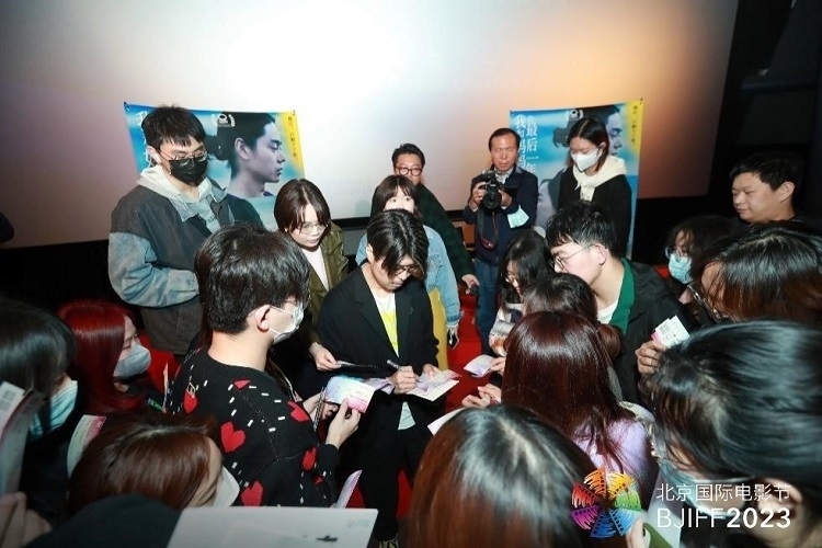 北京電影節(jié)展映后,川村元氣為粉絲簽名。北京電影節(jié)供圖