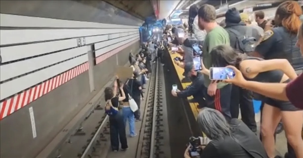 《紐約郵報(bào)》稱,視頻顯示,當(dāng)?shù)貢r(shí)間6日晚6時(shí)左右,在紐約市一地鐵站,多名抗議示威者跳入地鐵軌道,將迎面駛來的地鐵逼停??棺h者高呼“沒有正義,沒有和平”,而在背景聲音中,可以聽到警察試圖呼吁維持秩序。這群示威者呼吁為尼利討回公道。這一危險(xiǎn)舉動(dòng)導(dǎo)致該地鐵站暫時(shí)停運(yùn)。