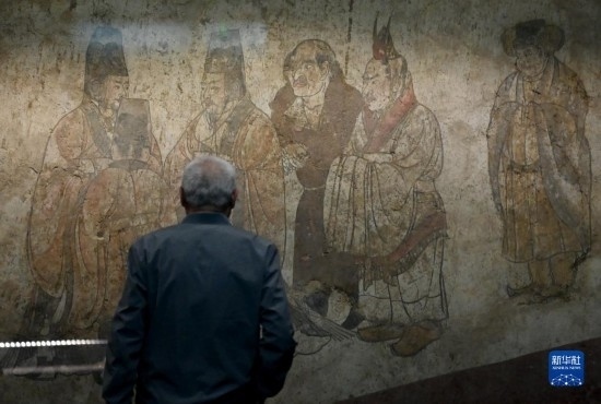 5月11日,游客在陜西歷史博物館內(nèi)觀看唐章懷太子墓《客使圖》。《客使圖》描繪的是唐代外交機(jī)構(gòu)鴻臚寺官員接待外國使節(jié)的場景。