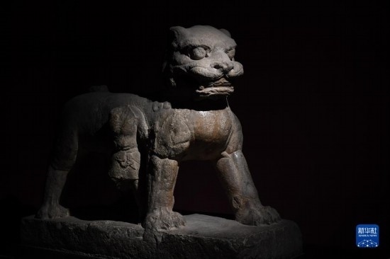 5月9日,游客在西安碑林博物館內(nèi)參觀唐代石獅。古代中國的獅子多通過絲綢之路由外國進(jìn)貢而來。