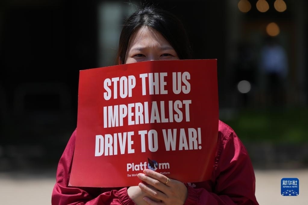 5月21日,民眾聚集在日本廣島袋町公園,抗議七國(guó)集團(tuán)峰會(huì)。