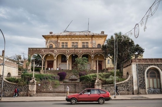 一輛汽車從厄立特里亞首都阿斯馬拉的阿斯馬拉歌劇院前駛過(guò)。