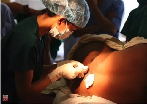 2010年11月12日,“和平方舟”號醫(yī)院船麻醉師盛睿芳對沁的母親實(shí)施麻醉,準(zhǔn)備剖腹產(chǎn)。新華社記者琚振華攝