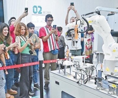 拉美代表參觀襄陽數(shù)字工業(yè)創(chuàng)新中心時,被智能化的工業(yè)設備所吸引。朱熙勇攝