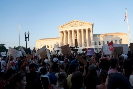 2022年6月24日,墮胎權(quán)支持者在美國首都華盛頓的聯(lián)邦最高法院外抗議。當(dāng)天,美國聯(lián)邦最高法院推翻近半個世紀(jì)前在聯(lián)邦層面確立墮胎權(quán)的判例“羅訴韋德案”。新華社記者劉杰攝