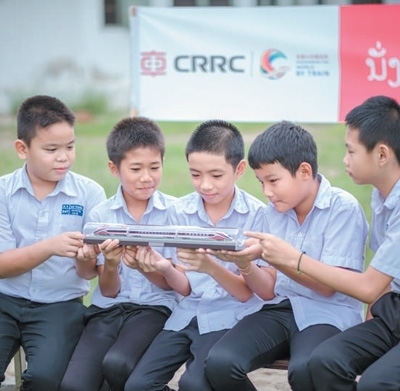自2021年12月3日通車以來,中老鐵路為便利兩國民眾出行、促進貿(mào)易往來發(fā)揮了積極作用。圖為在由中國中車集團有限公司舉辦的“坐著火車看世界”老撾站活動中,萬象宗佩中學(xué)學(xué)生觀賞中老鐵路動車模型。本報記者 孫廣勇攝