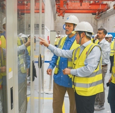 巴基斯坦卡洛特水電站是中巴經(jīng)濟走廊首個水電投資項目,由中國三峽集團投資開發(fā)建設(shè),運營一年來節(jié)約標(biāo)準(zhǔn)煤約140萬噸,減少二氧化碳排放約350萬噸。圖為中方技術(shù)人員向來訪的巴基斯坦代表團介紹水電站運行情況。本報巴基斯坦分社 薩義德·邁赫迪攝