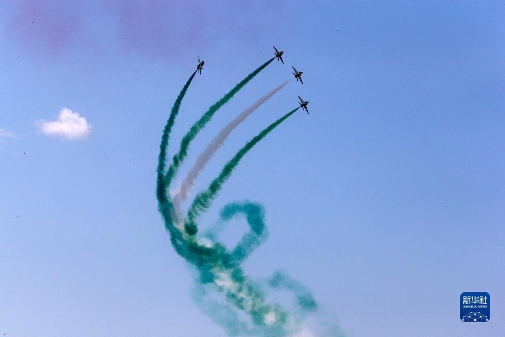 9月2日,在希臘塔納格拉空軍基地的雅典飛行周上,來自沙特阿拉伯的飛行表演隊(duì)進(jìn)行表演。新華社發(fā)(馬里奧斯·羅洛斯攝)