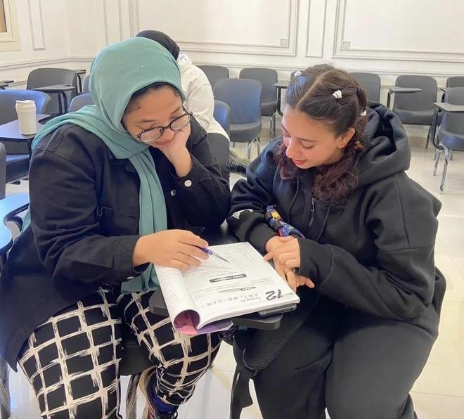 阿巴斯的侄女(左)正在學(xué)習(xí)。黃培昭攝