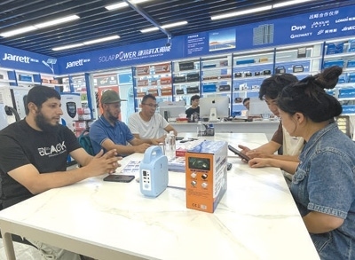 最近,埃馬紐埃爾又開始關(guān)注新能源產(chǎn)品?!翱溌∫恍┑胤酱嬖陔娏Χ倘?、供電不穩(wěn)的問(wèn)題,很多當(dāng)?shù)厝讼M夷茉谥袊?guó)找到合適的產(chǎn)品?!睘榇?,他把目標(biāo)瞄準(zhǔn)了義烏國(guó)際商貿(mào)城的新能源產(chǎn)品市場(chǎng),尋找到一些適合喀麥隆的光伏設(shè)備?!爸袊?guó)的新能源產(chǎn)品性能可靠、性價(jià)比高,產(chǎn)品品類覆蓋領(lǐng)域廣泛?!卑qR紐埃爾表示,大到醫(yī)療機(jī)構(gòu),小到禽畜養(yǎng)殖場(chǎng),中國(guó)光伏設(shè)備供應(yīng)的電力有助于滿足當(dāng)?shù)孛癖娚a(chǎn)生活的用電需求。