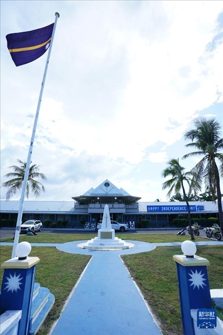 這是1月24日拍攝的瑙魯議會(huì)大樓。新華社記者 王申 攝