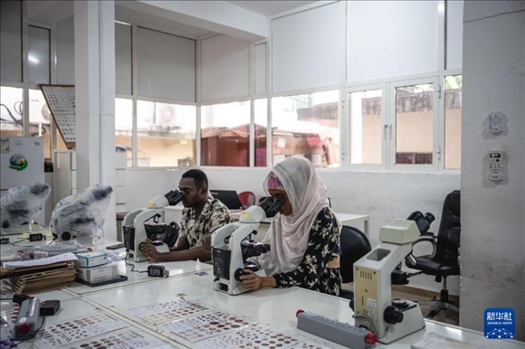這是2024年1月11日拍攝的位于科摩羅首都莫羅尼的科摩羅國家瘧疾防治中心實(shí)驗(yàn)室。新華社記者 王冠森 攝