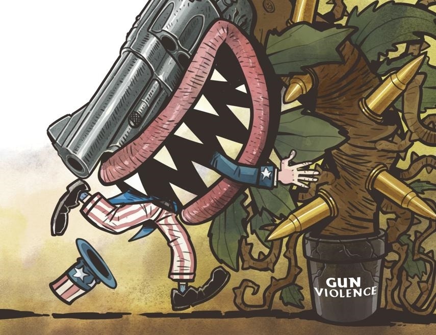 過于頻繁的各類槍支暴力事件已經(jīng)將美國社會吞沒。(作者:中國日報 蔡艨)