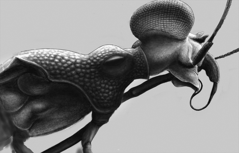 聲明說,研究人員在研究采自緬甸北部山谷一個琥珀礦的白堊紀中期化石標本時發(fā)現了一種昆蟲,其眼睛尺寸異常大,體色圖案復雜,且有明顯擴展的盾片。此外,它的翅膀上有獨立的前緣脈和亞前緣脈。研究人員認為,這種昆蟲的顏色和獨特形狀也許可以威懾捕食者。